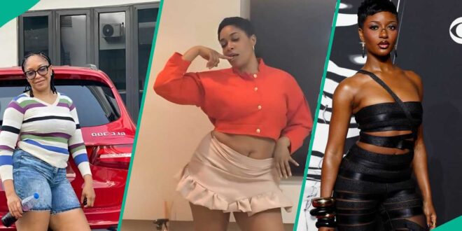 The mother of two, who offered advice to women a few months ago, was seen in the clip rocking a mini skirt, just like her singer daughter. She wore a short brown skirt above the knee, paired with an orange cropped long-sleeve shirt, while making her display.