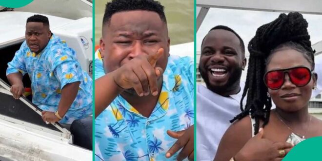 A clip captures Oga Sabinus on a cruise boat with ladies as he made money rain.
