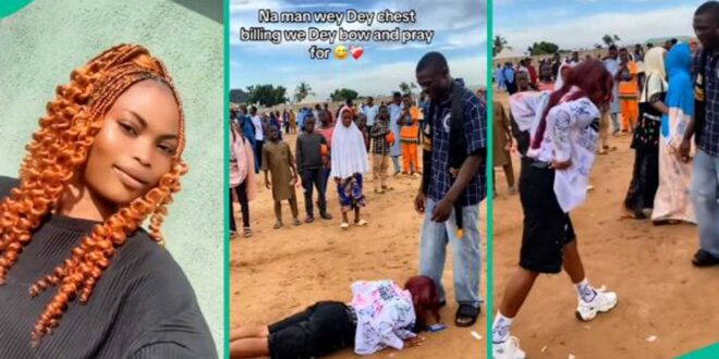 - In the heartwarming video, she laid on the floor to prostrate for her man after he arrived at her school on her sign-out day