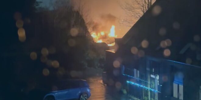 Locals have taken to social media to say they heard “three large explosions” before the fire took hold.
