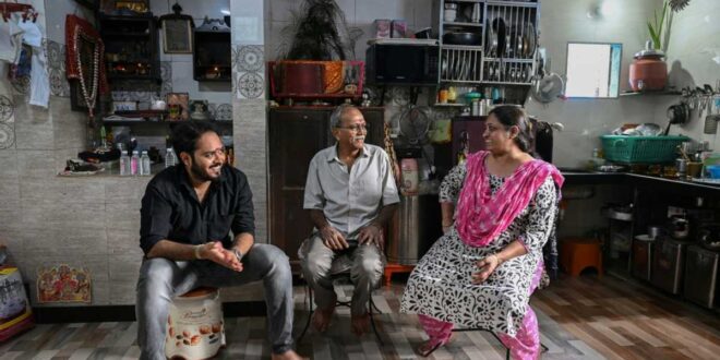 Bipinkumar Padaya (C) live in a one-storey home crammed into a tangle of alleys.