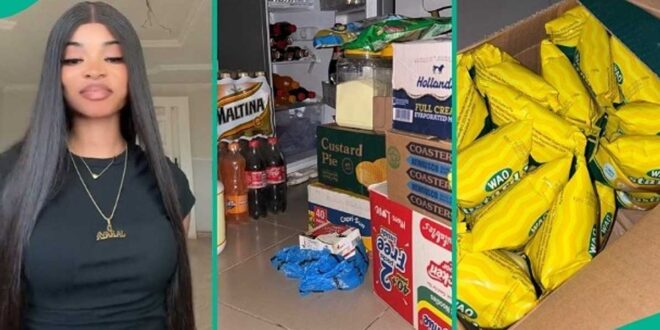 • In the heartwarming clip, she displayed the cartons of provisions and other items which her caring boyfriend gifted her