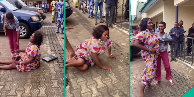 A woman was seen rolling on the floor as she collected her appointment letter from the Civil Service.