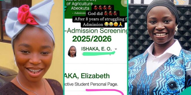 The lady then showed that she had gained admission into the Federal University of Agriculture, Abeokuta.