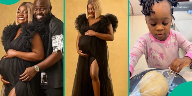 “HELLO EVERYBODY!!! HELLO EVERYBODY!! My Eyes Are Pushing Me. So I have told my wife over and over again, ‘Your Wi-Fi connection in this house is too strong,’ but she did not hear. Now we are expecting a huge FILE download. Mama don go lose guard, she collect Koboko around 3:33 a.m., 7G Sonic speed. Well, Diapers and baby formula companies, come close; you are about to have a new customer. Baby Rain is about to be a big sister. Congratulations to us, my darling @heynonso,” he wrote in the caption.