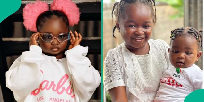 “My people, my people, nolywood actress oluebebe popularly known as boss baby has finally shown us her baby girl ,woww ike mother like daughter 😂😂.”