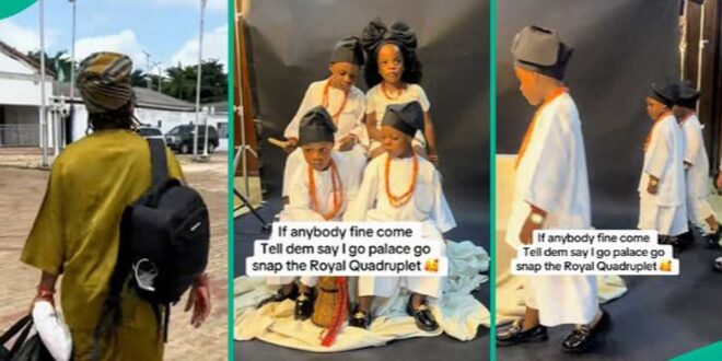 The clip showed the four adorable siblings posing for photos in their stunning native attire at a studio.
