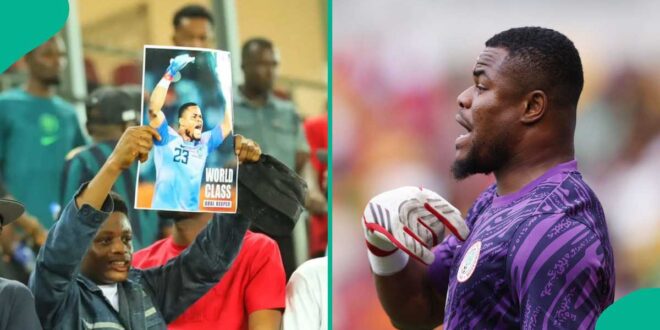 The supporter was captured holding a photo of the goalkeeper, with “World Class Goalkeeper” boldly written on it.