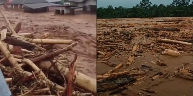 Dalam sekejap, air bah dan material longsor datang dengan cepat.