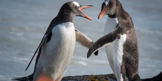 He gave the example of gentoos, which are known to give stones as gifts, and adélies, which use stones to build nests.